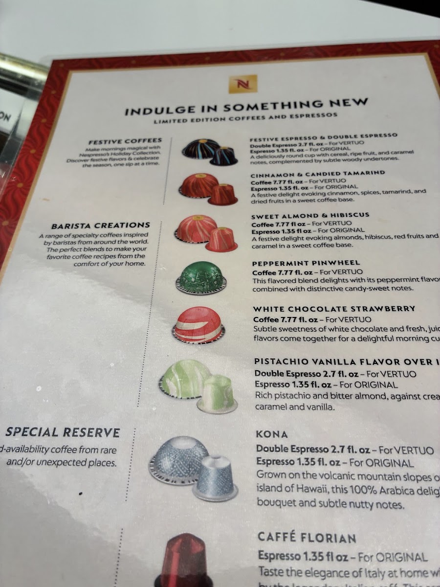 Nespresso Boutique Bethesda menu gallery